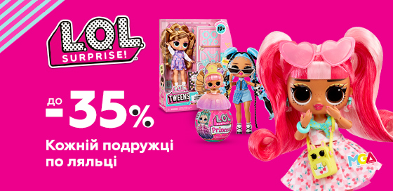 ** Под фразой «Скидка до 35%» следует понимать возможность потребителя в период акции приобрести акционный товар ТМ L.O.L. Surprise! с определенным перечнем артикулов со скидкой до 35% стоимости конкретного товара по НДС.
