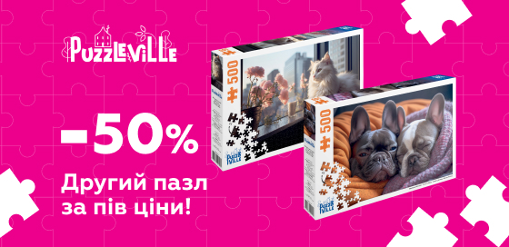 ** Под фразой «скидка -50% на каждый 2й товар» подразумевается, что при покупке двух любых единиц товара ТМ Puzzleville, участвующего в этом акционном предложении, покупатель имеет возможность приобрести каждую вторую единицу товара на акционных условиях. В таком случае к двум единицам акционного товара применяется скидка, которая в сумме равна 50% от стоимости второй единицы товара по НДС, который равнозначен или меньше по стоимости. Эта скидка равномерно распределяется между такими товарами.