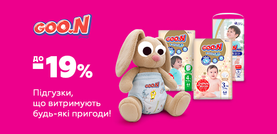 ** Під фразою «Знижка до 19%» слід розуміти можливість споживача в межах періоду акції придбати акційний товар ТМ Goo.N з визначеним переліком артикулів зі знижкою від 12% до 19% від вартості конкретного товару з ПДВ.