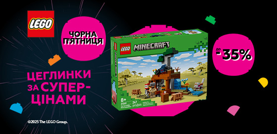 ** Під фразою «Знижка до 35%» слід розуміти можливість споживача в межах періоду акції придбати акційний товар ТМ LEGO з визначеним переліком артикулів зі знижкою до 35% від вартості конкретного товару з ПДВ.