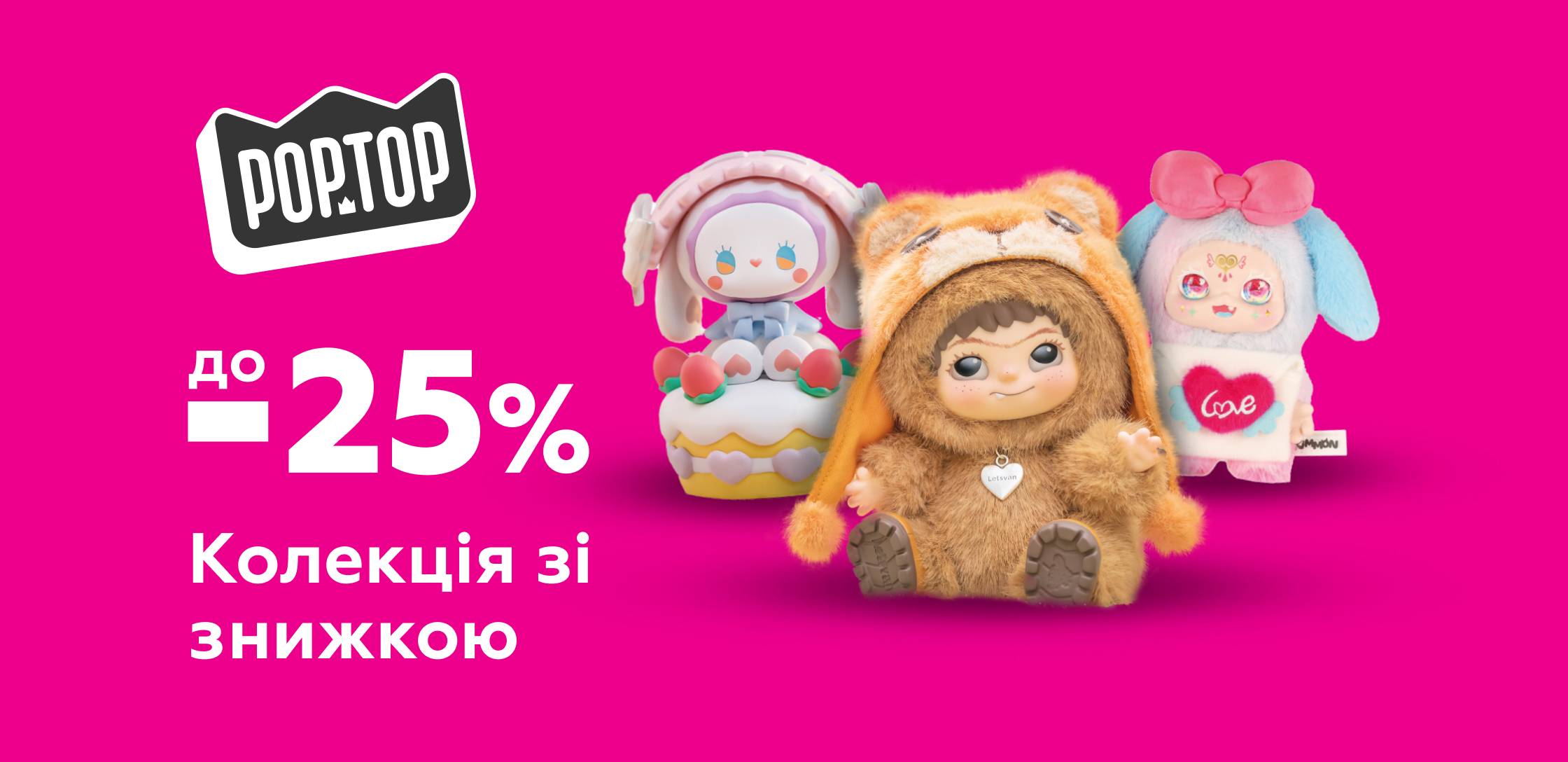 ** Під фразою «Знижка до 25%» слід розуміти можливість споживача в межах періоду акції придбати акційний товар ТМ Pop Top з визначеним переліком артикулів зі знижкою до 25% від вартості конкретного товару з ПДВ.