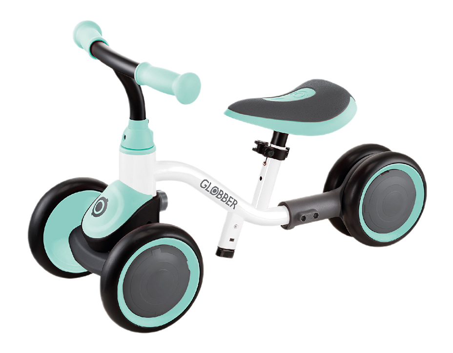 Велобіг-каталка. Варіант для найменших. Така модель має 3 або 4 литих колеса, низьку дерев’яну, пластикову чи металеву раму. Вони підходять для малюків від 1 року (до 20 кг), які тільки почали ходити, оскільки не вимагають зусиль для утримання рівноваги (лише для сидіння). Завдяки максимальній стійкості кататися дитина може самостійно чи з допомогою батьків.