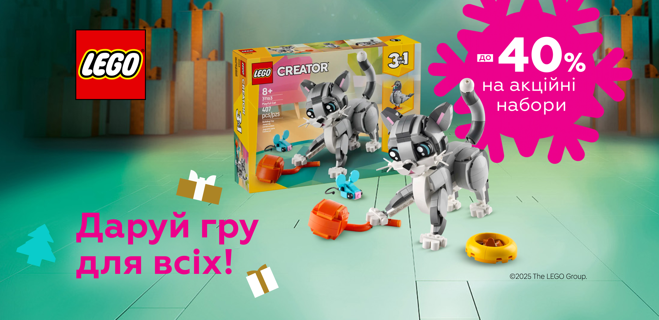 ** Під фразою до «Знижка 40%» слід розуміти можливість споживача в межах періоду акції придбати акційний товар ТМ LEGO з визначеним переліком артикулів зі знижкою до 40% від вартості конкретного товару з ПДВ.